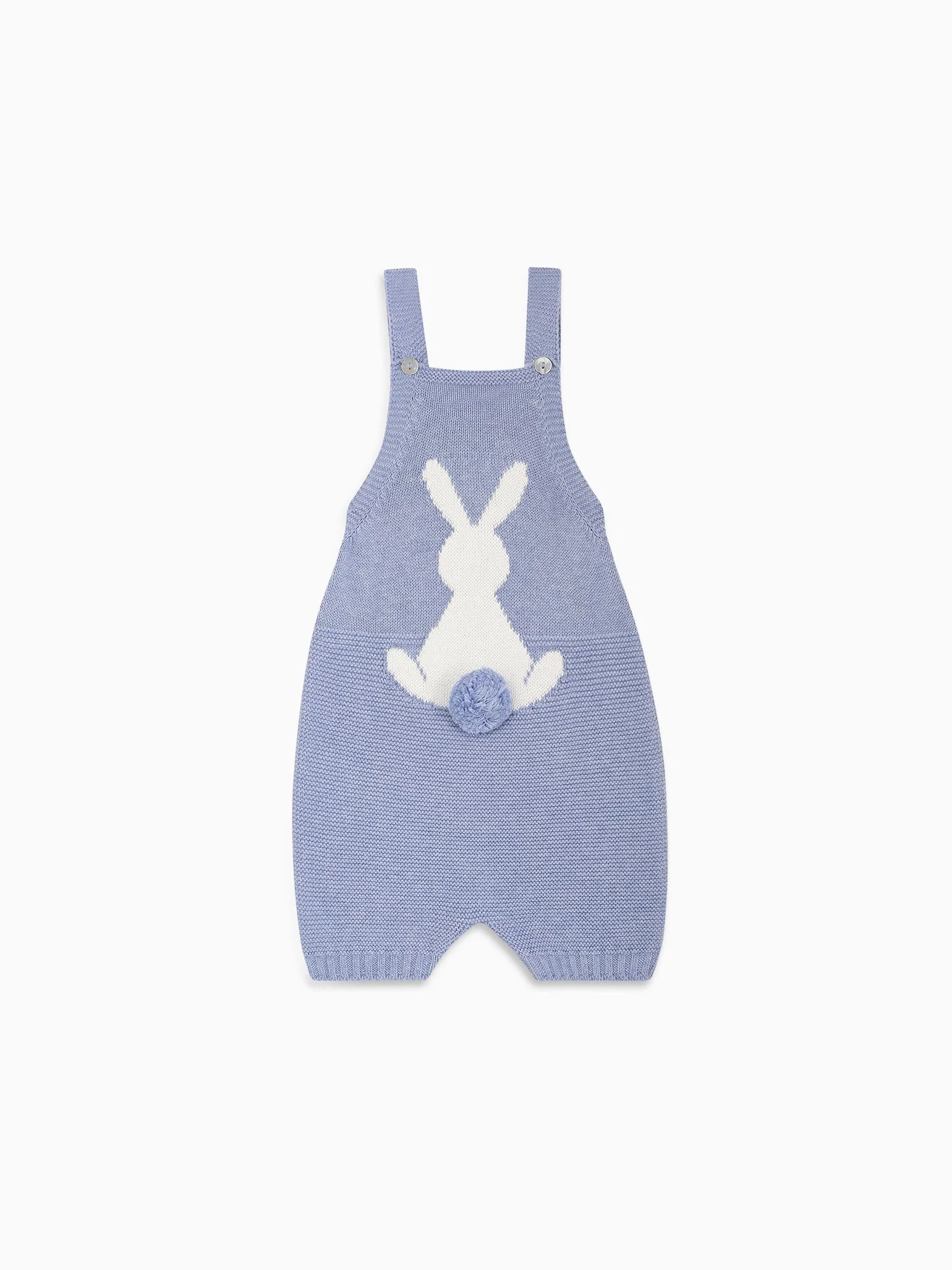 9. Blue Crispa Cotton Bunny Baby Knitted Dungarees by La Coqueta