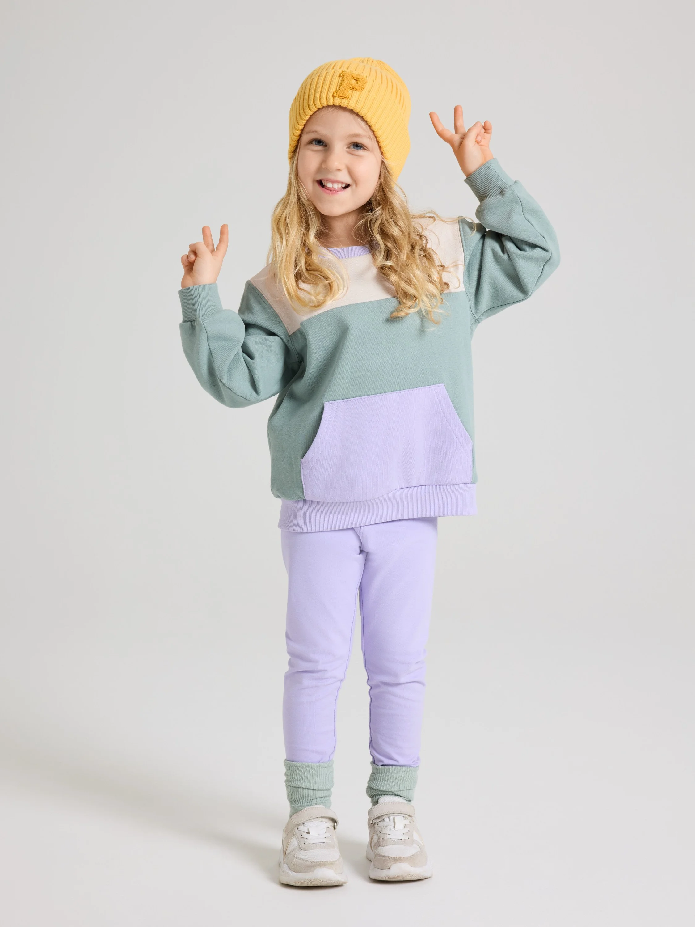 This casual spring sweatshirt from PO.P is perfect for keeping kids warm and comfortable on relaxed days. Made in soft, brushed organic cotton, this sweatshirt features a trendy block-colour design and a large kangaroo pocket.