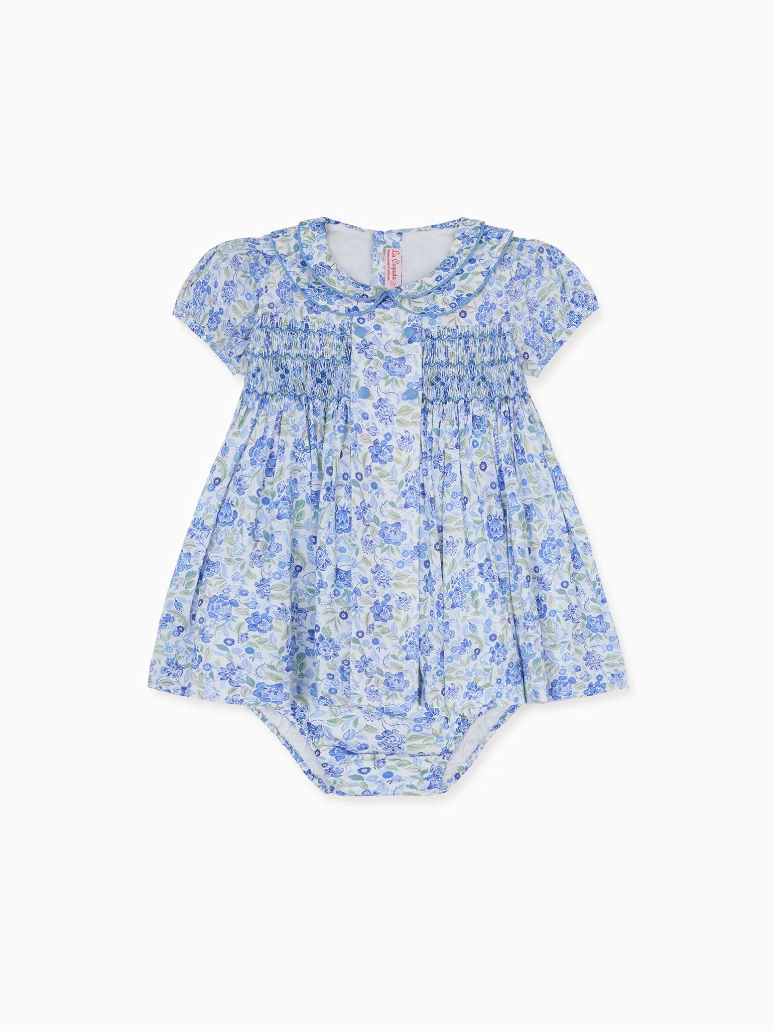 7. Dusty Blue Floral Arcadia Hand-Smocked Set by La Coqueta