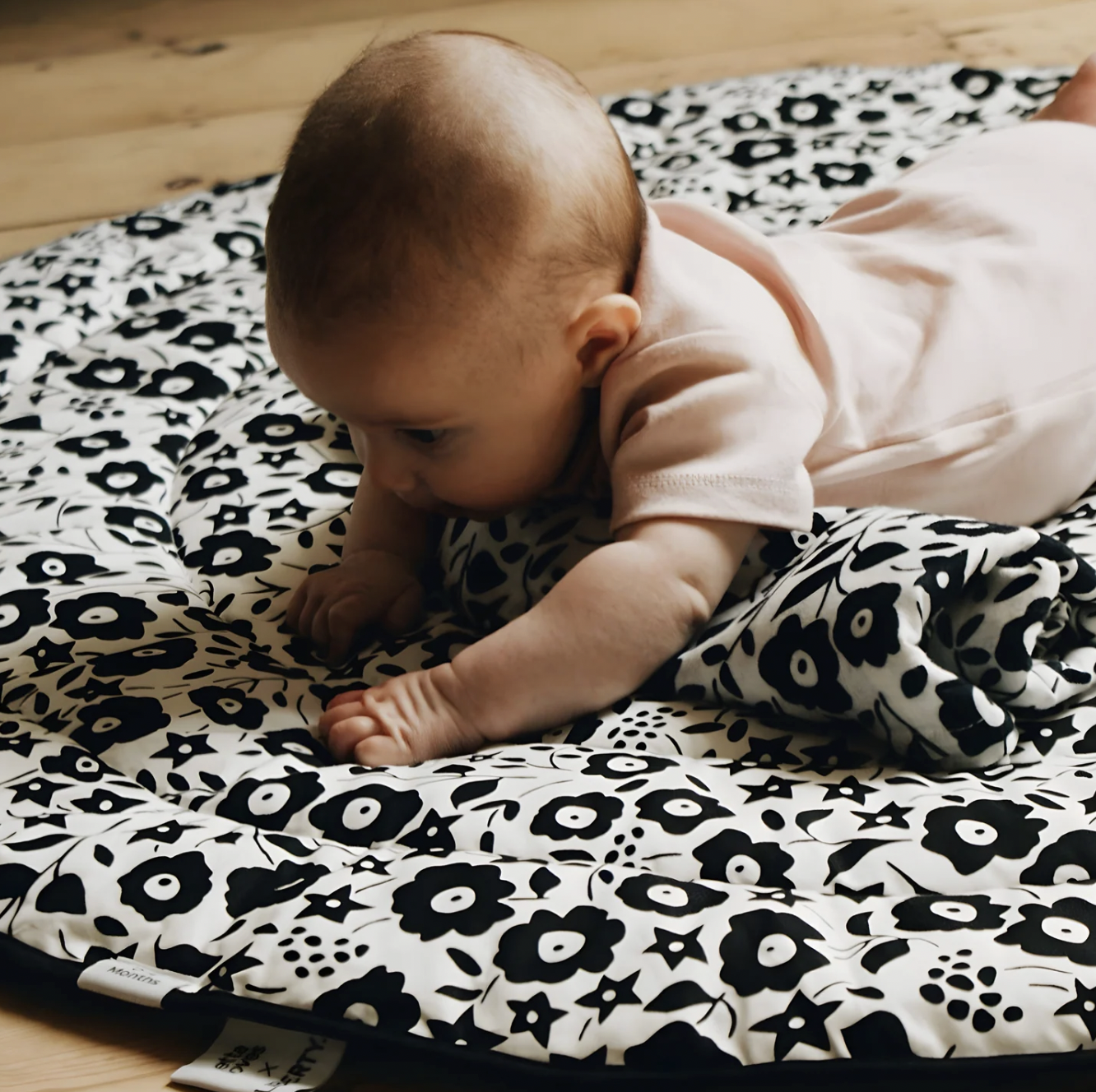 Wharfedale Meadow captures the joy of countryside walks, with intricate detailing and contrast to delight developing eyes. Fairford Shadow, a 1930s floral classic, is transformed with subtle movement and tonal depth to promote calm focus and visual engagement. The collection includes muslins, playmats, sensory strips, and blankets for babies aged 0–12 months, with further pieces arriving in spring 2026. Each product has been crafted to blend beauty and function, turning everyday moments into enriching sensory experiences.