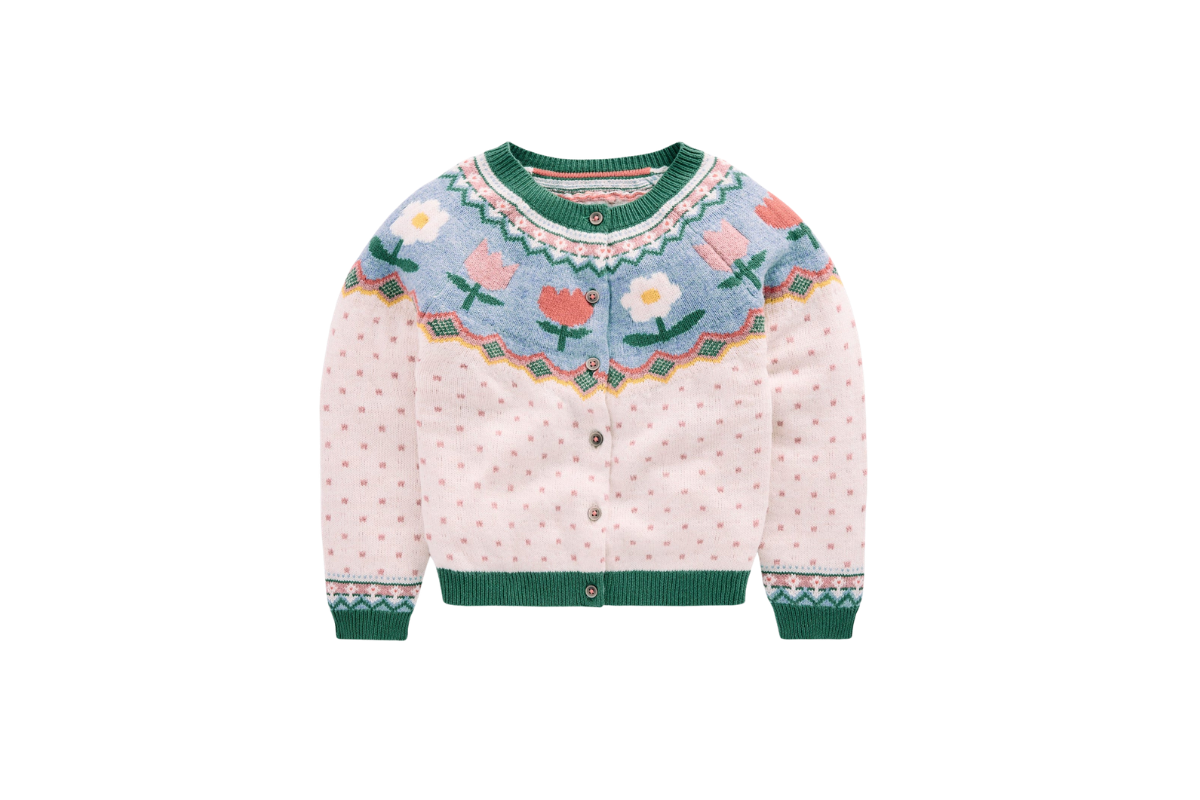 You can always count on Boden for a good fair isle spring cardigan. This floral one captures Easter without feeling overly themed. A versatile spring layer available up to age 14 years.